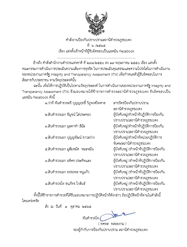 คำสั่งมอบหมายการปฏิบัติหน้าที่ตอบ Q & A
