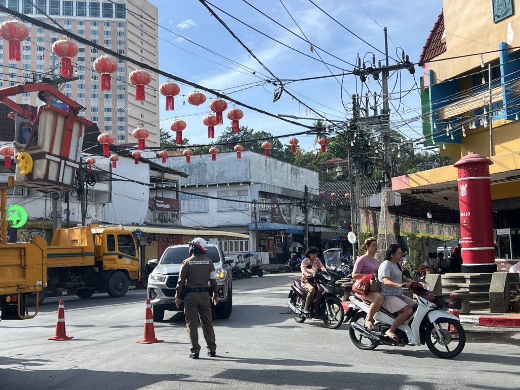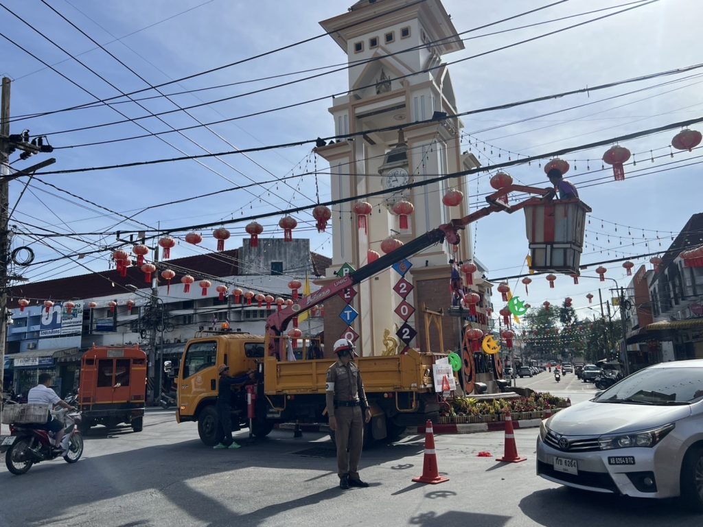 จราจร สภ.เบตง อำนวยความสะดวกและดูแลการติดตั้งโคมไฟต้อนรับเทศกาลวันฮารีรายอ