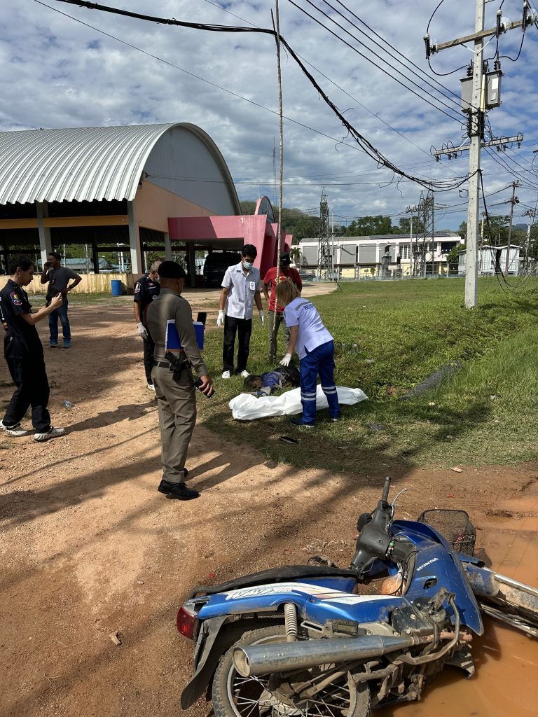 ตรวจสถานที่เกิดเหตุบริเวณแยก บริเวณ อาคารเอนกประสงค์ ต.ตาเนาะแมเราะ