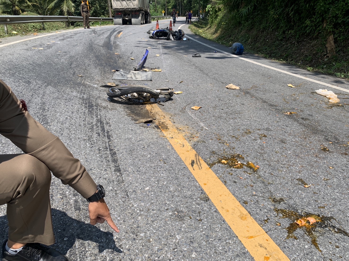 ตรวจสถานที่เกิดเหตุบริเวณทาง ทางหลวงแผ่นดินหมายเลข 410 (บ้าน กม. 18)