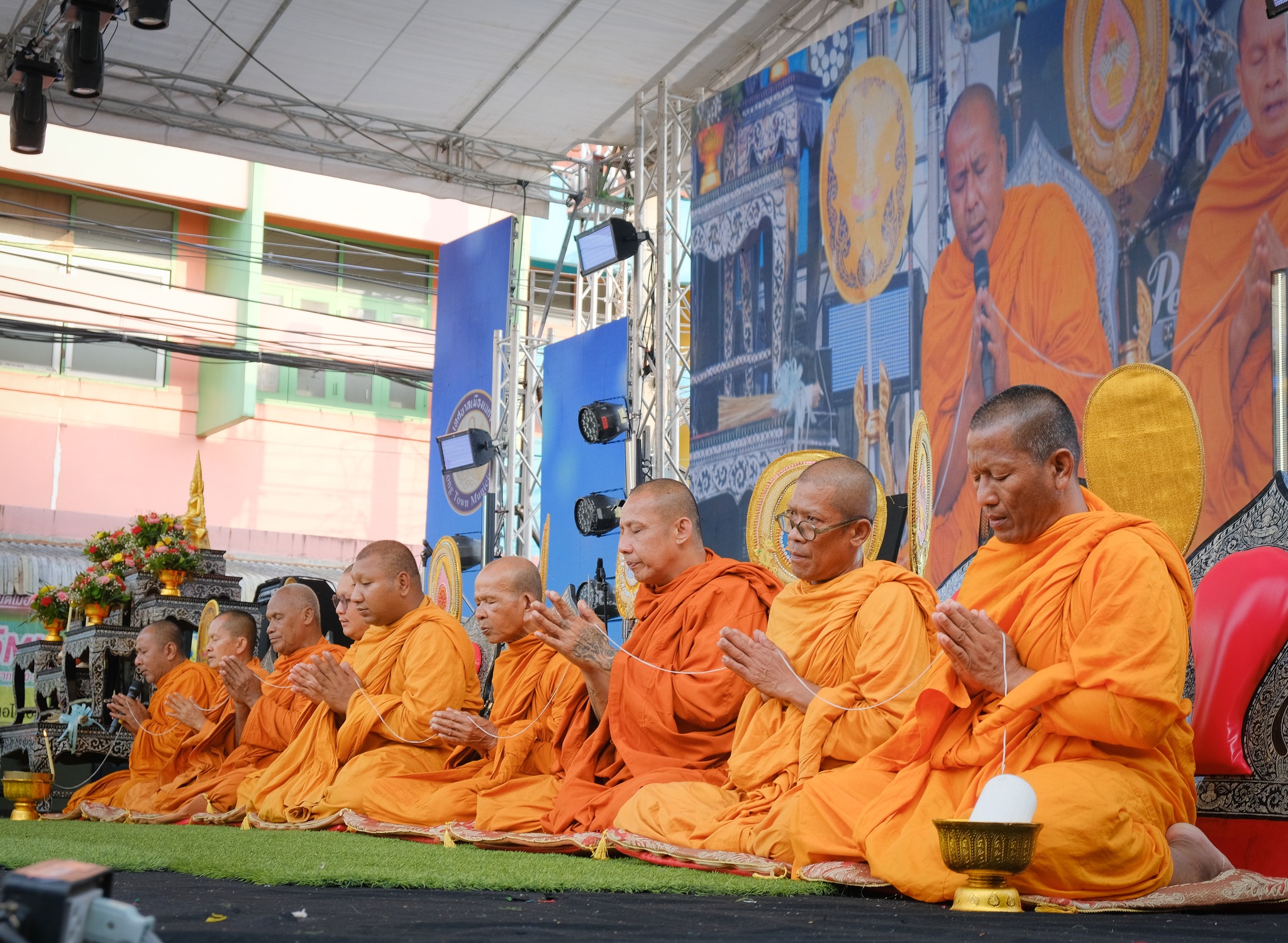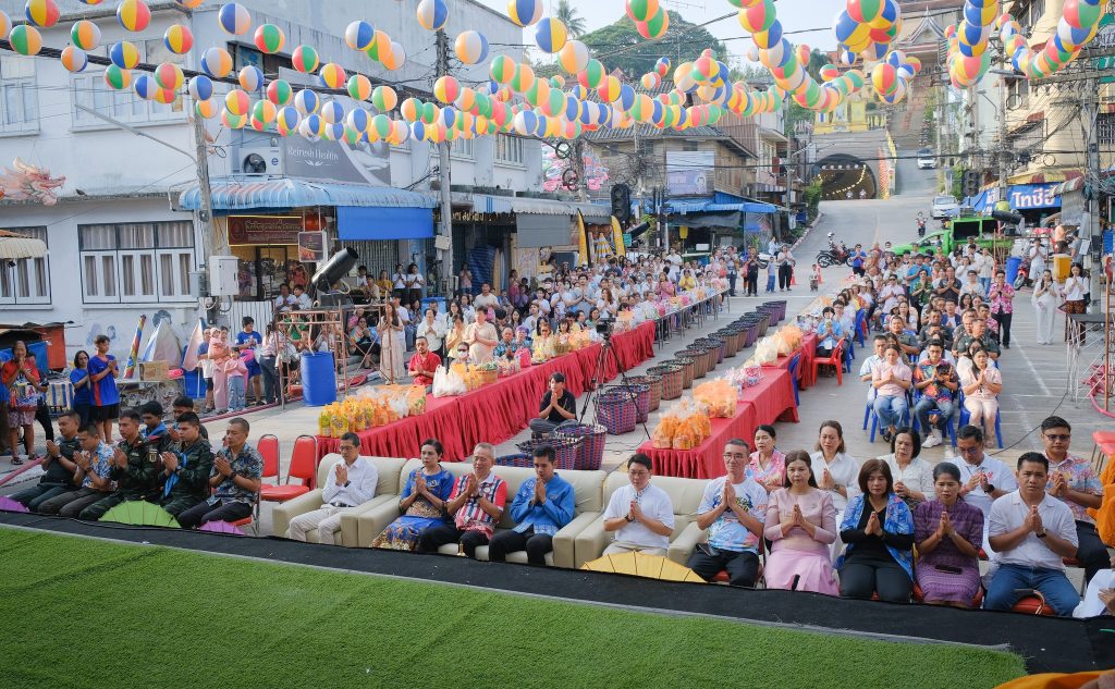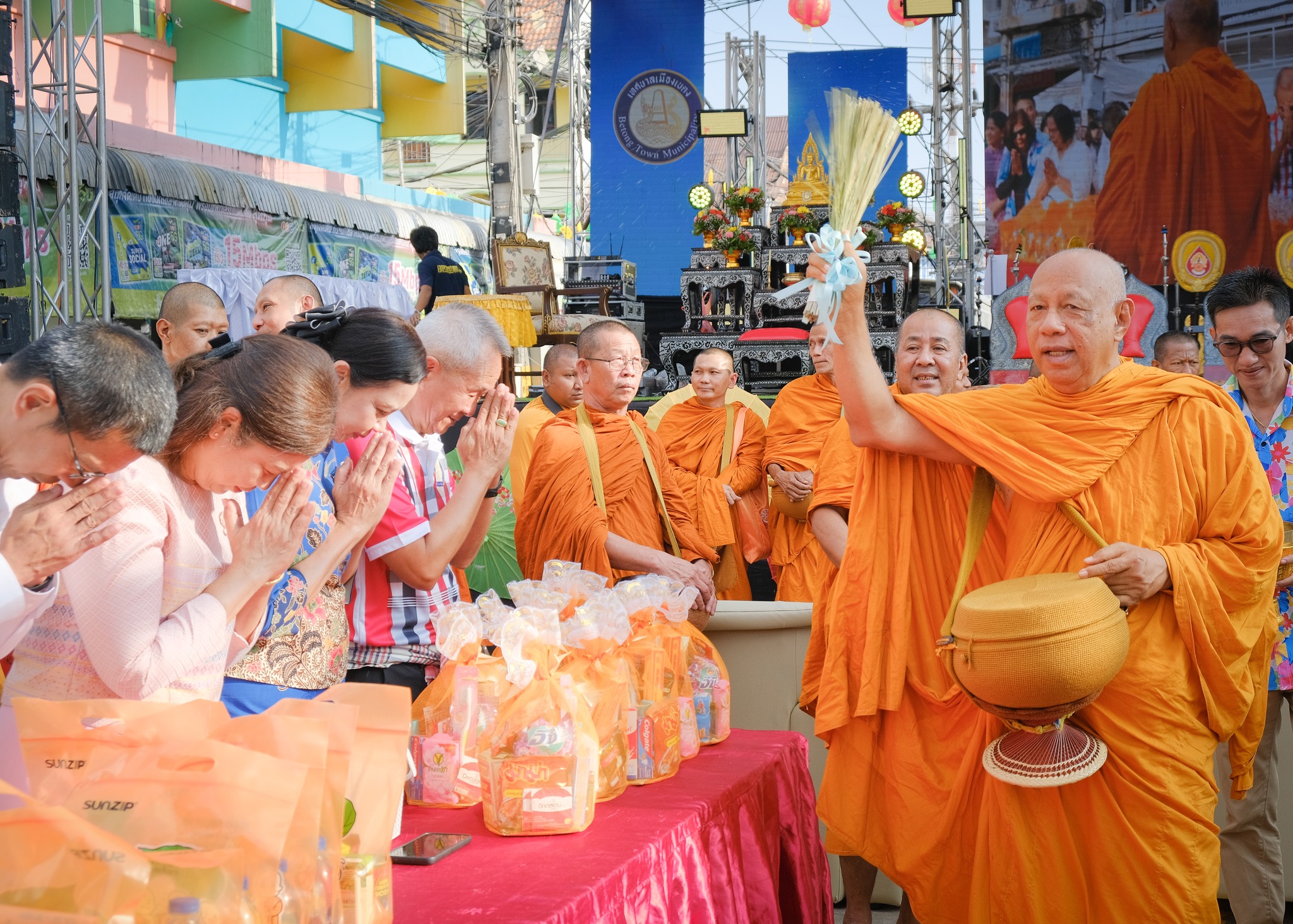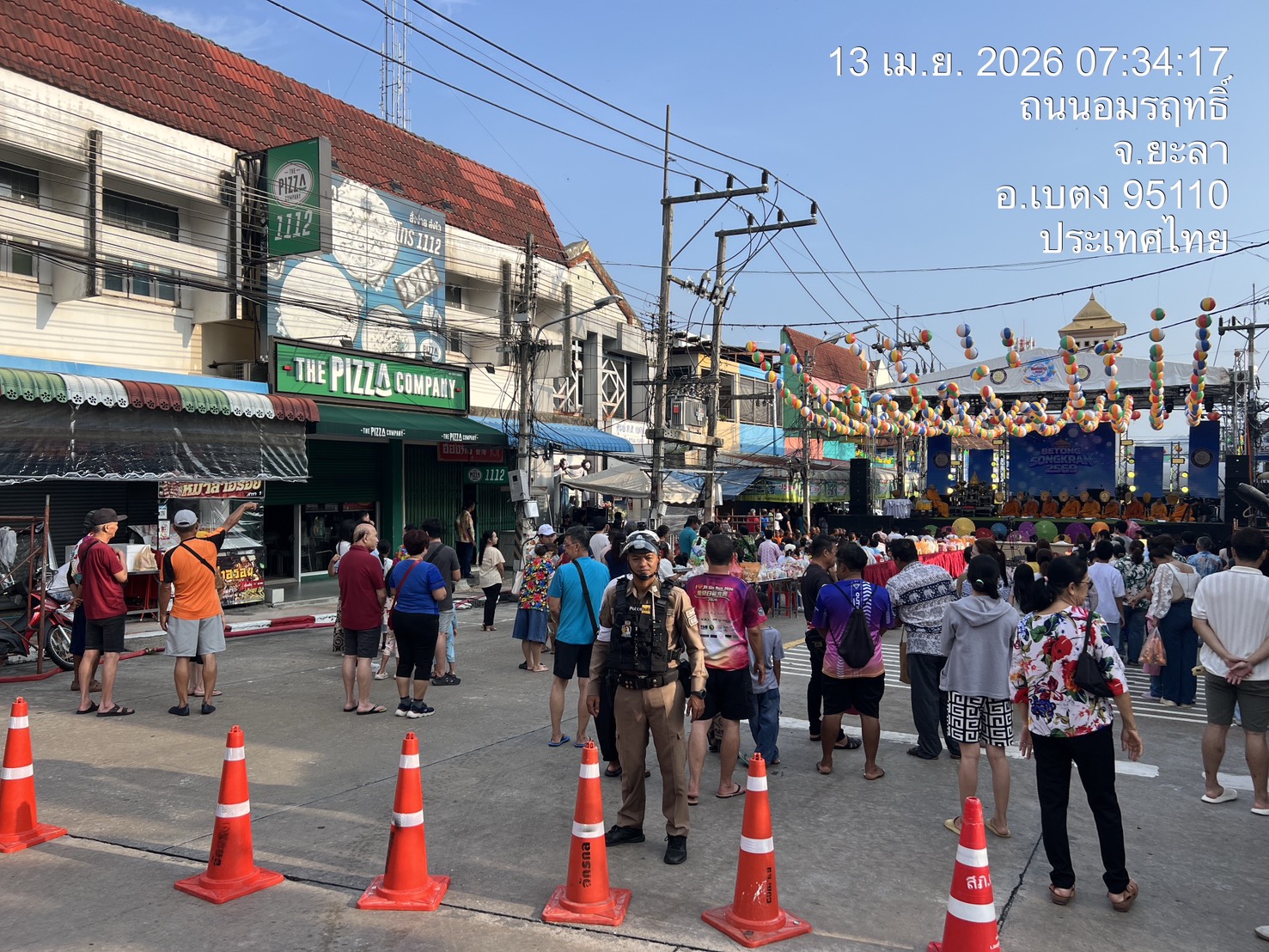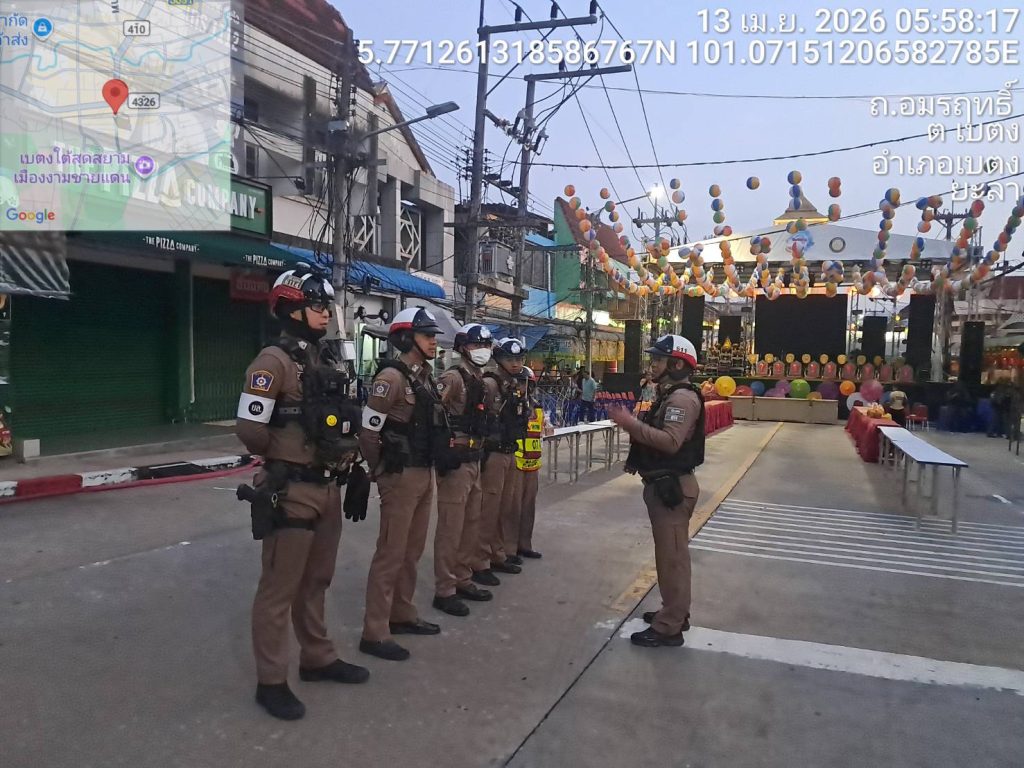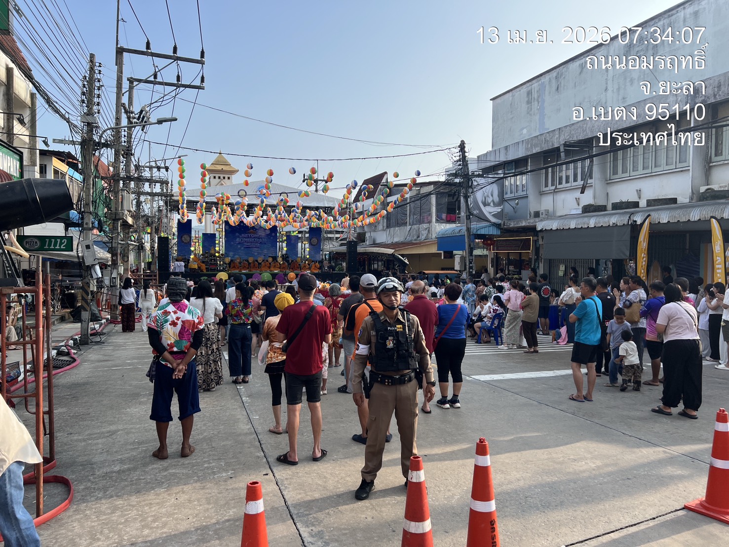ตำรวจจราจรอำนวยความสะดวกการจราจรและรักษาความปลอดภัย พิธีตักบาตรเนื่องในวันสงกรานต์ช่วงเช้าวันสงกรานต์