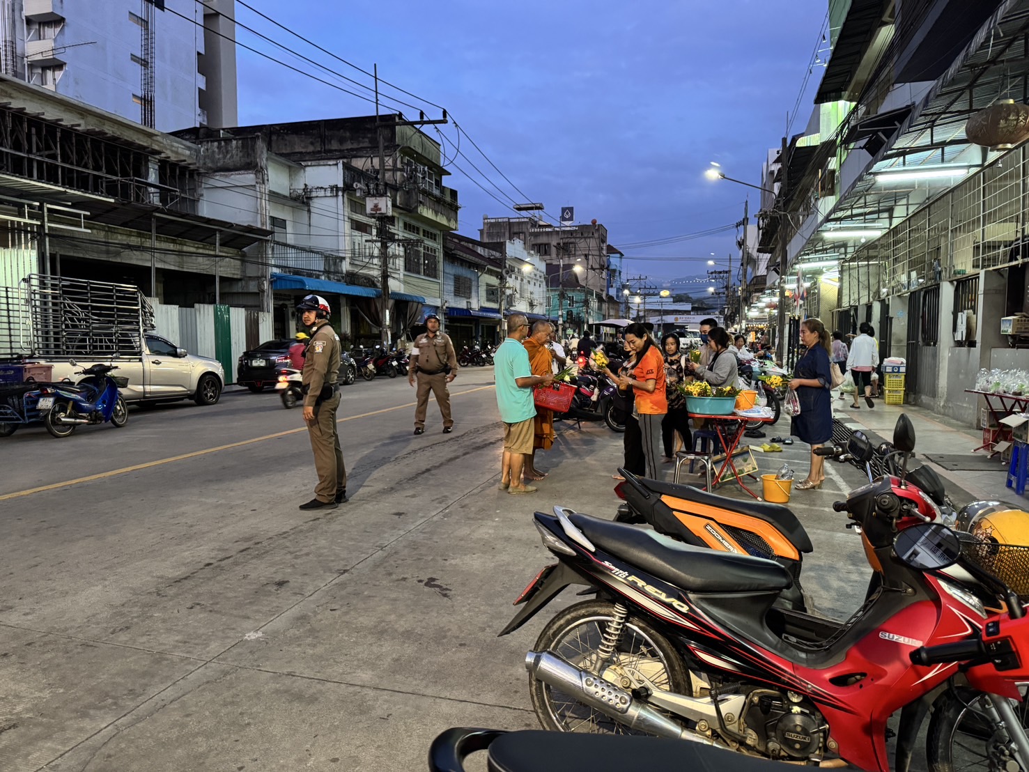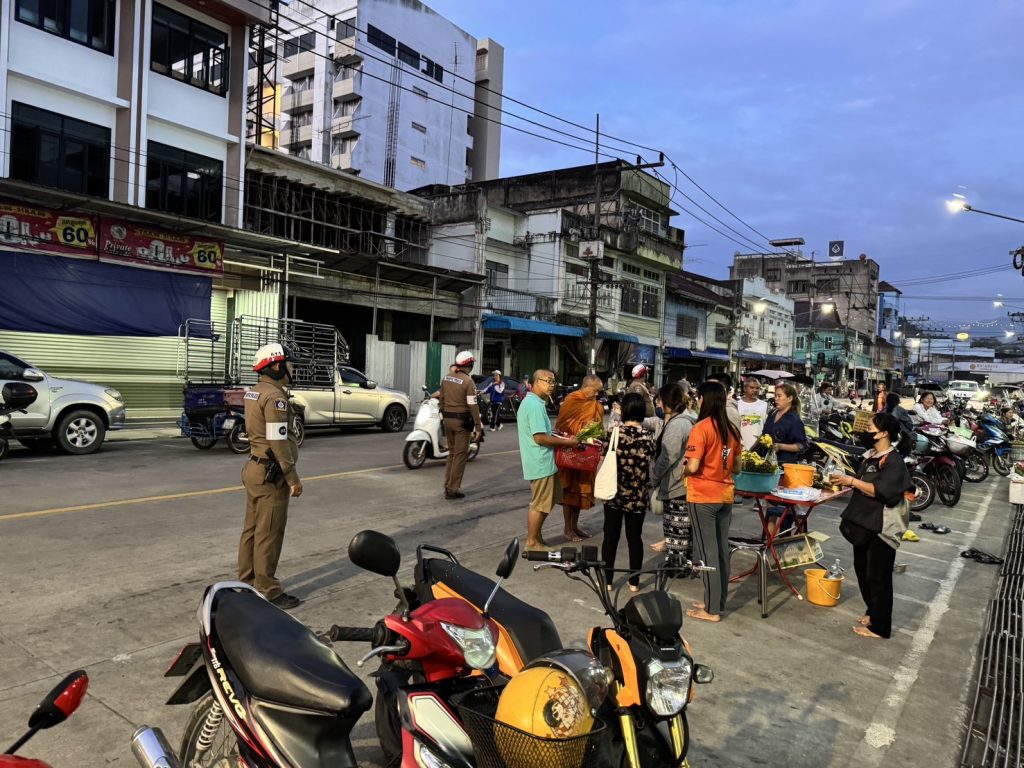 จราจร สภ.เบตง อำนวยความสะดวกและดูแลการจราจร พระสงฆ์บิณฑบาต