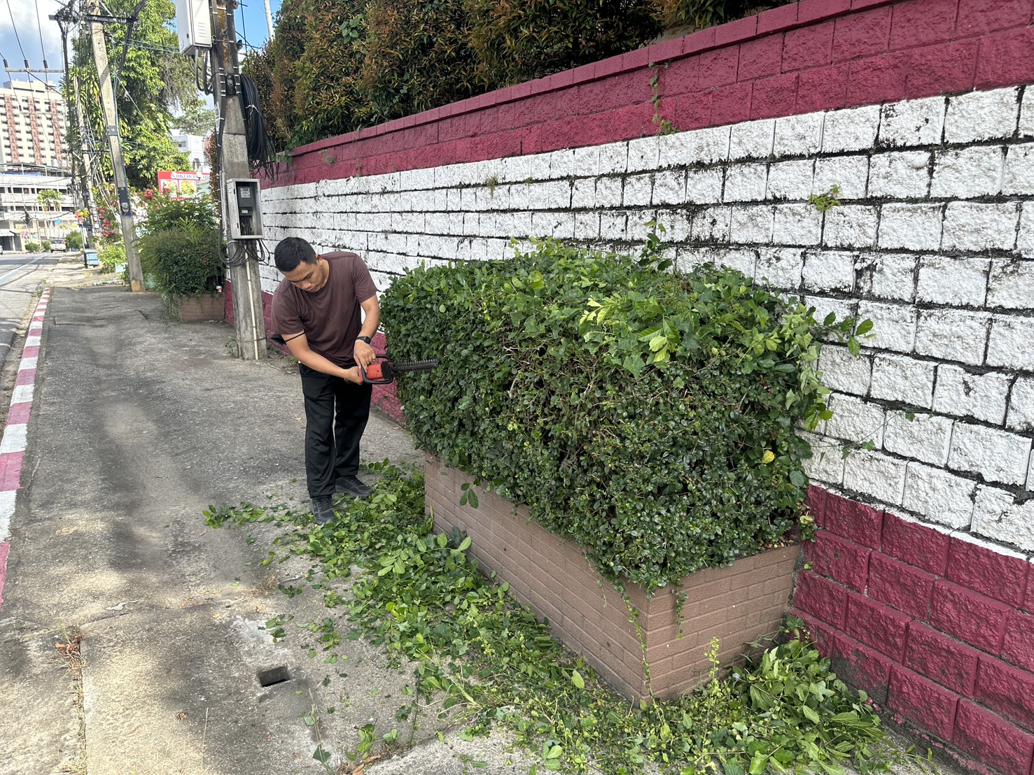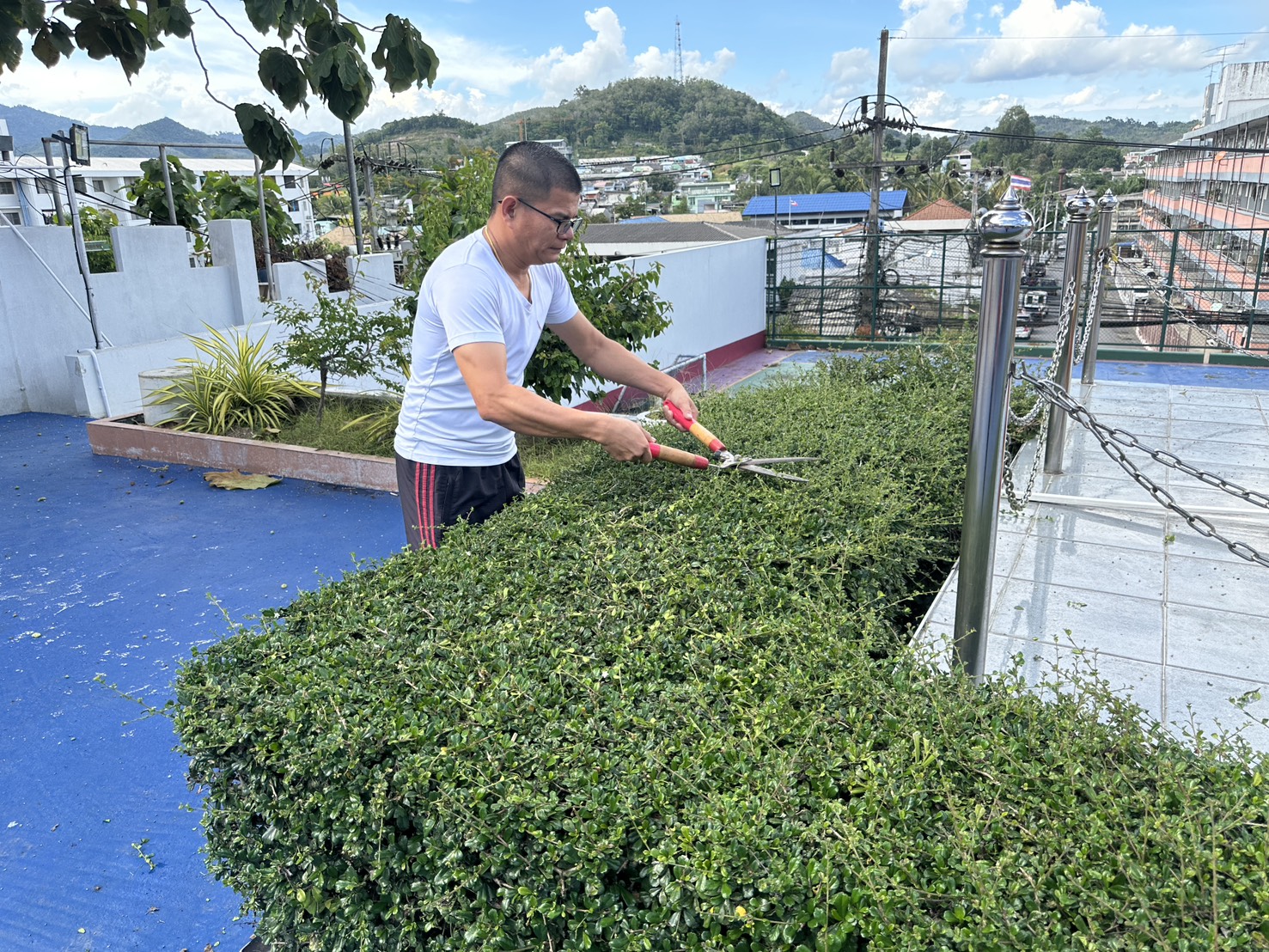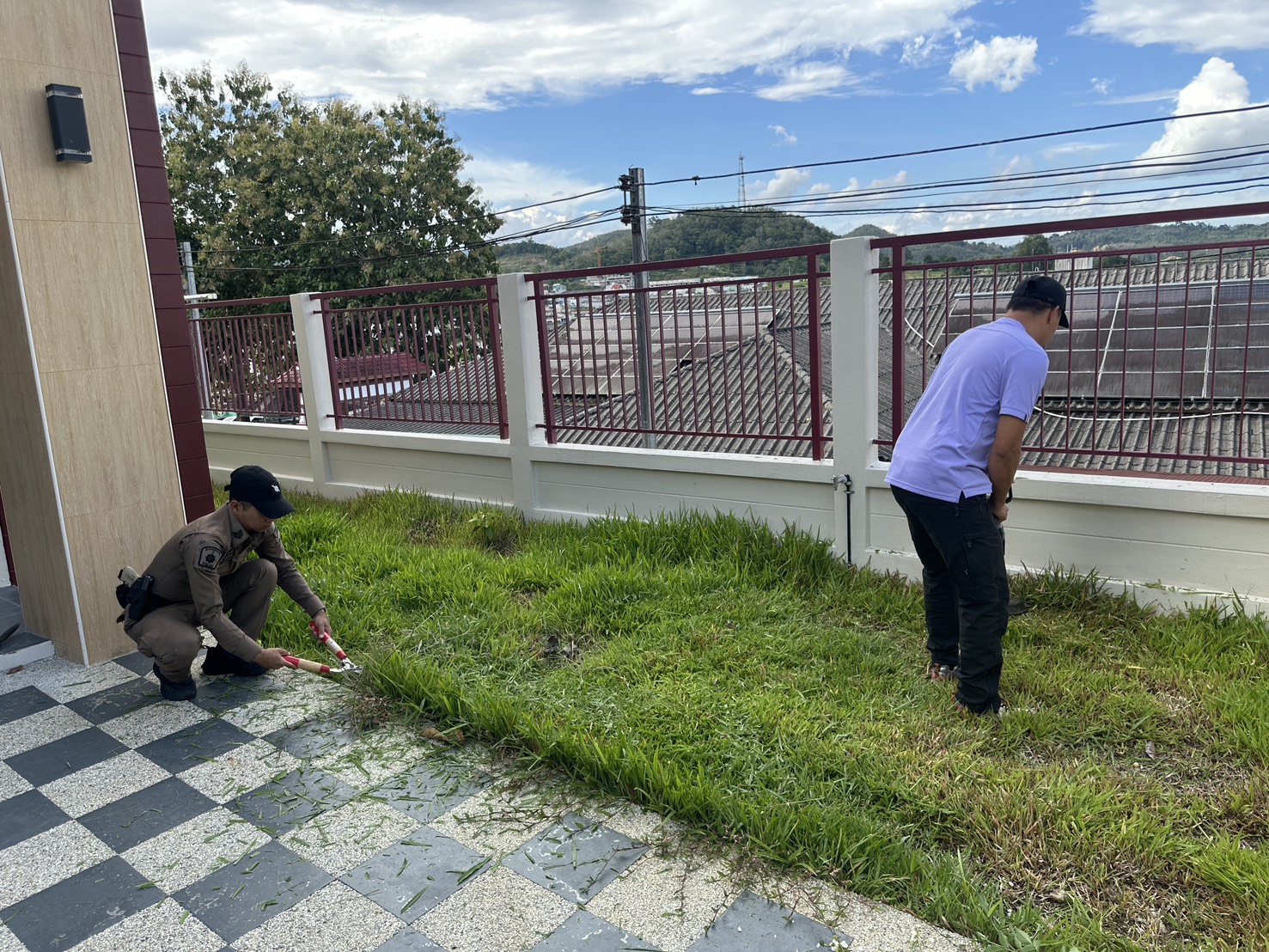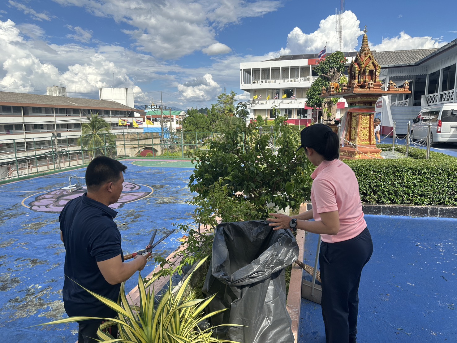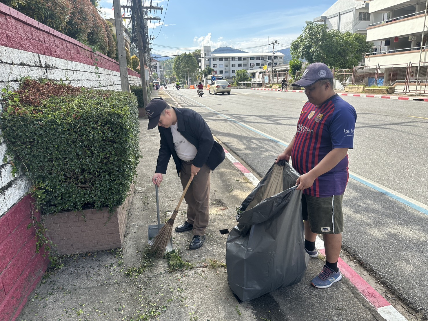 พร้อมด้วยข้าราชการตำรวจ สภ.เบตง ร่วมทำความสะอาด ตัดแต่งกิ่งไม้และเก็บเศษขยะ และถอนหญ้าที่ขึ้นรกทึบ บริเวณโดยรอบสถานีตำรวจภูธรเบตง บ้านพัก ข้าราชการตำรวจ