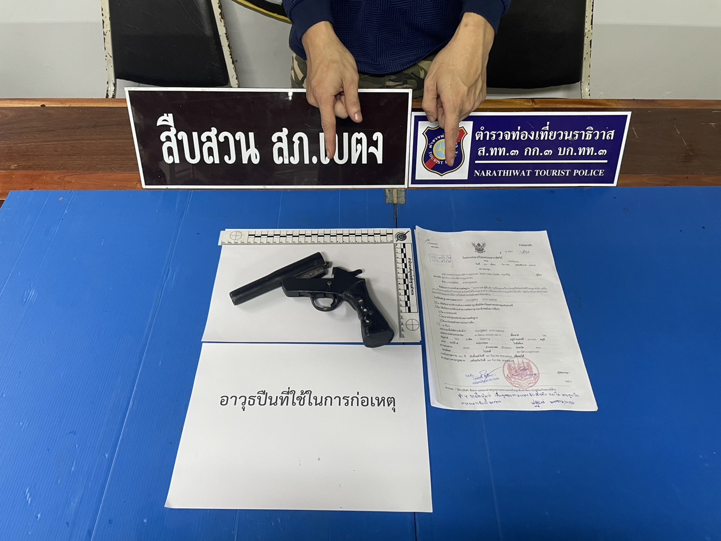 ตำรวจเบตงจับกุม เพื่อนบ้านโหด ทะเลาะไม่เลิก คว้าปืนยิงหัวคู่กรณีเจ็บสาหัส